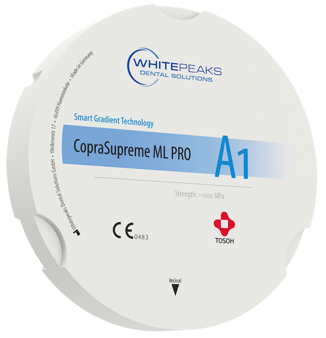 Dióxido de circonio translúcido con alta resistencia a la flexión (~ 1200 MPa) para estructuras y restauraciones totalmente anatómicas de puentes de hasta 14 unidade.